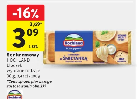 Ser kremowy HOCHLAND bloczek wybrane rodzaje 90 g, 3,43 zł / 100 g