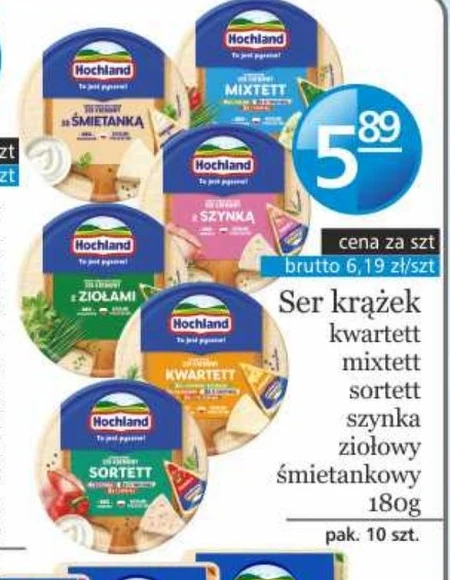 Ser krążek kwartett mixtett sortett szynka ziołowy śmietankowy 180g pak. 10 szt.
