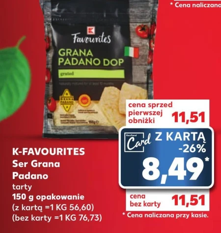 K-FAVOURITES Ser Grana Padano tarty 150 g opakowanie.