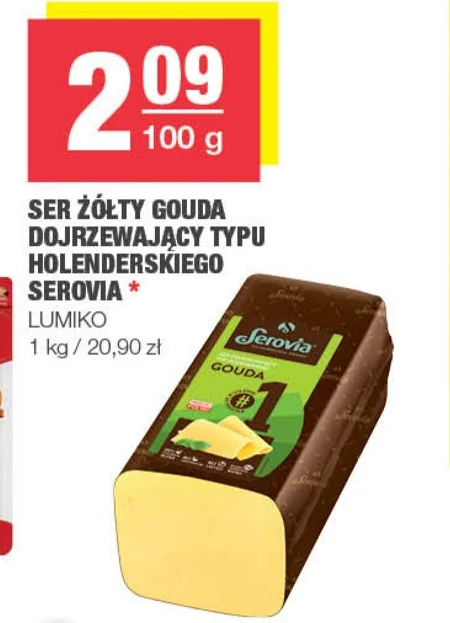 SER ŻÓŁTY GOUDA DOJRZEWAJĄCY TYPU HOLENDERSKIEGO SEROVIA * LUMIKO 1 kg / 20,90 zł