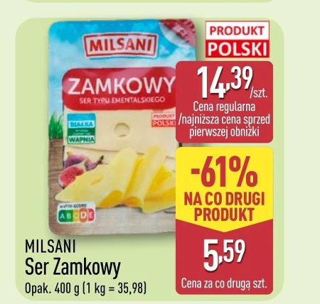 Milsani Ser Zamkowy jest dostępny w Aldi w cenie 14,39 zł za opakowanie 400 g (1 kg = 35,98 zł). Przy zakupie dwóch opakowań, cena za każde kolejne wynosi jedynie 5,59 zł – to aż 61% taniej. Idealnie sprawdzi się na kanapki, do sałatek, a także jako dodatek do dań głównych. Jego łagodny, kremowy smak zadowoli nawet najbardziej wymagających smakoszy. To klasyczny ser o szerokim zastosowaniu w kuchni. Można go pokroić w plastry i podawać z ulubionymi wędlinami i pieczywem, dodać do zapiekanki albo wykorzystać jako farsz do naleśników. Doskonale komponuje się z owocami, orzechami i miodem, tworząc pyszną przekąskę. Promocja na ser Zamkowy Milsani to doskonała okazja, by zaopatrzyć się w ulubiony produkt w wyjątkowo korzystnej cenie. Warto wykorzystać tę ofertę i cieszyć się smakiem serowego przysmaku. Oferta ważna od 2026-04-02 do 2026-04-04 Źródło: gazetka Aldi