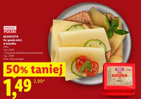 MLEKOVITA Ser gouda mini, w kawalku 100 g 50% taniej