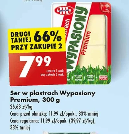 Ser w plastrach Wypasiony Premium, 300 g 26,63 zł/kg Cena przed obniżką: 11,99 zł/opak., 33% mniej Cena regularna: 11,99 zł/opak. (39,97 zł/kg), 33% taniej