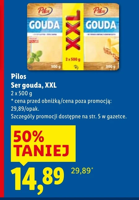 Pilos Ser gouda, XXL 2 × 500 g * cena przed obniżką/cena poza promocją: 29,89/opak.