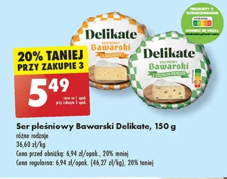 Ser pleśniowy Bawarski Delikate, 150 g różne rodzaje 36,60 zł/kg Cena przed obniżką: 6,94 zł/opak., 20% mniej Cena regularna: 6,94 zł/opak. (46,27 zł/kg), 20% taniej