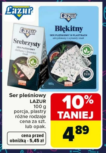 Ser pleśniowy LAZUR 100 g porcja, plastry różne rodzaje cena za szt. lub opak.