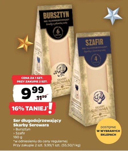 Ser długodojrzewający Skarby Serowara > Bursztyn > Szafir 180 g *w odniesieniu do ceny regularnej Przy zakupie 2 szt. 9,99/1 szt. (55,50/1 kg)