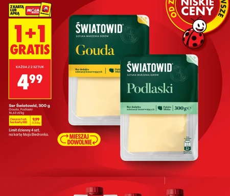 Ser Światowid, 300 g Gouda, Podlaski 16,63 zł/kg Limit dzienny 4 szt. na kartę Moja Biedronka.