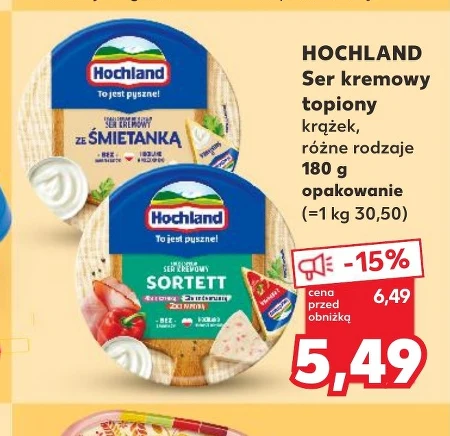 HOCHLAND Ser kremowy topiony krążek, różne rodzaje 180 g opakowanie (=1 kg 30,50)