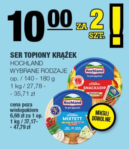SER TOPIONY KRĄŻEK HOCHLAND WYBRANE RODZAJE op. / 140 - 180 g 1 kg / 27,78 - - 35.71 zł cena poza wielopakiem 6,69 zł za 1 op. 1 kg / 37,17- - 47,79 zł