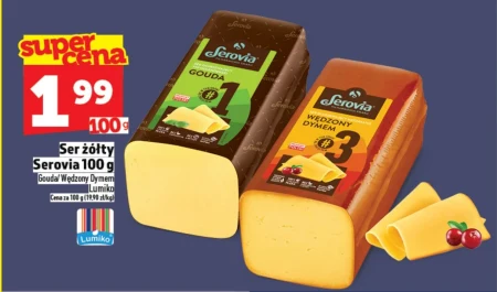 Ser żółty Serovia 100 g Gouda/ Wędzony Dymem Lumiko Cena za 100 g (19.90 zł/kg)