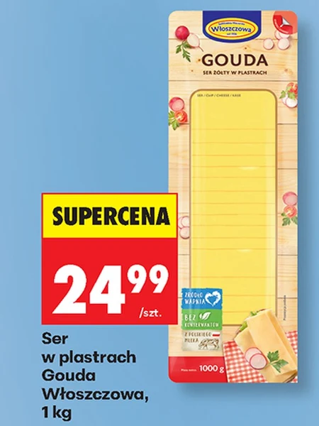 Ser w plastrach Gouda Włoszczowa, 1 kg