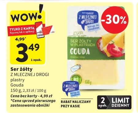 Ser żółty Z MLECZNEJ DROGI plastry Gouda 150 g, 2,33 zł / 100 g Cena bez karty - 4,99 zł