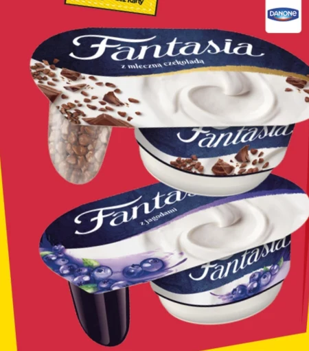 Danone Fantasia jogurt kremowy z jagodami to przepyszna chwila przerwy w dwufazowym kubeczku. Pozwoli on delektować się Danone Fantasia tak, jak lubisz najbardziej. Wymieszaj jogurt z jagodami lub zjedz je osobno. Decyzja należy do Ciebie. Sięgnij po Danone Fantasia - to świetna przekąska o każdej porze dnia. Oderwij się na moment od codziennych obowiązków i celebruj wyjątkową chwilę przyjemności. Rozpłyń się w kremowym smaku jogurtu i poznaj Danone Fantasia także z innymi dodatkami! Moja Fantasia. Moja chwila.