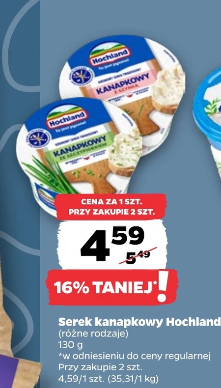 Serek kanapkowy Hochland (różne rodzaje) 130 g *w odniesieniu do ceny regularnej Przy zakupie 2 szt. 4,59/1 szt. (35,31/1 kg)
