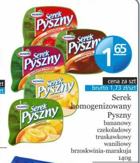 Serek homogenizowany Pyszny bananowy czekoladowy truskawkowy waniliowy brzoskwinia-marakuja 140g