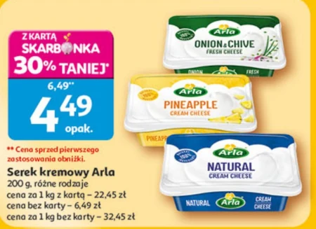 Serek kremowy Arla 200 g, różne rodzaje cena za 1 kg z kartą - 22,45 zł cena bez karty - 6,49 zł cena za 1 kg bez karty - 32,45 zł