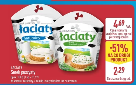 ŁACIATY Serek puszysty Opak. 150 g (1 kg = 31,27) do wyboru: naturalny, z cebulą i szczypiorkiem lub z chrzanem