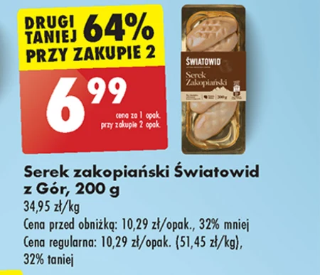 Serek zakopiański Światowid z Gór, 200 g 34,95 zł/kg Cena przed obniżką: 10,29 zł/opak., 32% mniej Cena regularna: 10,29 zł/opak. (51,45 zł/kg), 32% taniej