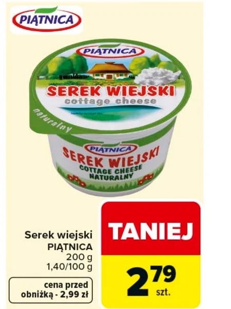 Serek wiejski PIĄTNICA 200 g 1,40/100 g cena przed obniżką - 2,99 zł
