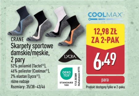 CRANE Skarpetki sportowe damskie/męskie, 2 pary 52% poliamid (Tactel®), 46% poliester (Coolmax®), 2% elastan (Lycra®); różne rodzaje Rozmiary: 35/38–43/46