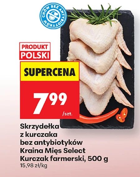 Skrzydełka z kurczaka bez antybiotyków Kraina Mięs Select Kurczak farmerski, 500 g 15,98 zł/kg