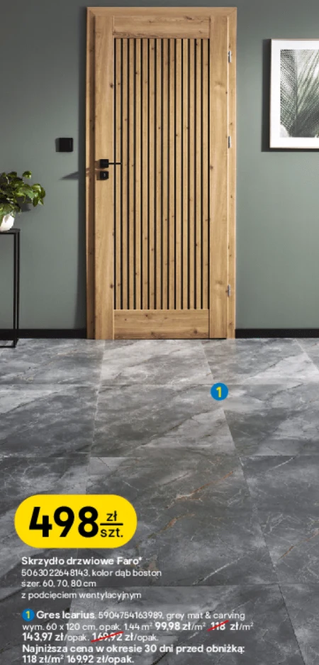 Skrzydło drzwiowe Faro* 50630 2264 8143. kolor dab boston szer. 60. 70. 80 cm z podcięciem wentylacyjnym