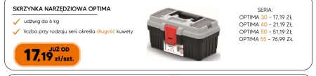 SKRZYNKA NARZĘDZIOWA OPTIMA udźwig do 6 kg liczba przy rodzaju serii określa długość kuwety SERIA: OPTIMA 30 - 17,19 ZŁ OPTIMA 40 - 21,19 ZŁ OPTIMA 50 - 51,19 ZŁ OPTIMA 55 - 76,99 ZŁ