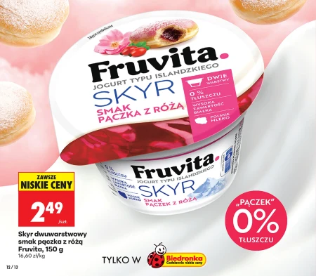 Skyr dwuwarstwowy smak pączka z różą Fruvita, 150 g 16,60 zł/kg