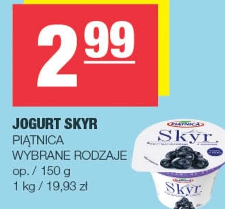JOGURT SKYR PIĄTNICA WYBRANE RODZAJE op. / 150 g 1 kg / 19,93 zł