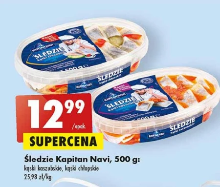 Śledzie Kapitan Navi, 500 g: kąski kaszubskie, kąski chłopskie.