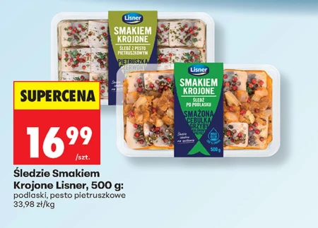 Śledzie Smakiem Krojone Lisner, 500 g: podlaski, pesto pietruszkowe 33,98 zł/kg