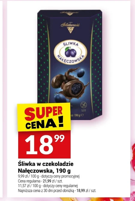 Śliwka w czekoladzie Nałęczowska, 190 g 9,99 zł / 100 g - dotyczy ceny promocyjnej Cena regularna - 21,99 zł / szt. 11,57 zł / 100 g - dotyczy ceny regularnej Najniższa cena z 30 dni przed obniżką - 18,99 zł / szt.