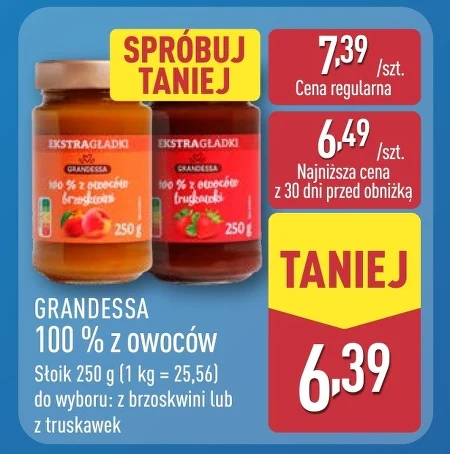 GRANDESSA 100 % z owoców Słoik 250 g (1 kg = 25,56) do wyboru: z brzoskwini lub z truskawek