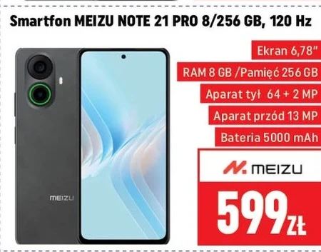 Smartfon MEIZU NOTE 21 PRO 8/256 GB w cenie 599 zł występuje w ofercie Neopunkt. Wyposażony w duży, 6,78-calowy ekran odświeżany w 120 Hz, to urządzenie stworzone dla osób ceniących komfort użytkowania i płynność obrazu. Posiada 8 GB pamięci RAM oraz 256 GB przestrzeni na dane, co zapewnia sprawne działanie nawet przy wymagających aplikacjach i pozwala na przechowywanie dużej ilości zdjęć, filmów i plików. Aparaty o rozdzielczości 64 i 2 megapiksele z tyłu oraz 13 megapikseli z przodu umożliwiają robienie szczegółowych zdjęć i prowadzenie wysokiej jakości rozmów wideo. Wydajna bateria o pojemności 5000 mAh gwarantuje długotrwałe działanie bez konieczności częstego ładowania. To doskonała okazja, aby zdobyć wydajny i funkcjonalny smartfon w atrakcyjnej cenie. Zachęcamy do zapoznania się z pełną specyfikacją i skorzystania z oferty Neopunkt. Oferta ważna od 2026-03-30 do 2026-04-19 Źródło: gazetka Neopunkt