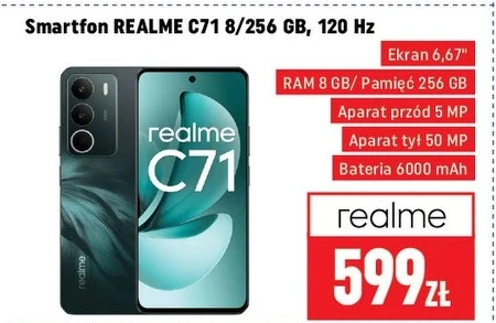 Smartfon REALME C71 8/256 GB w cenie 599 zł występuje w ofercie Neopunkt. Ten model oferuje duży, 6,67-calowy ekran i wysoką częstotliwość odświeżania wynoszącą 120 Hz, co zapewnia płynność obrazu podczas użytkowania. Posiada 8 GB pamięci RAM oraz aż 256 GB przestrzeni na dane, dzięki czemu bez problemu obsłuży wiele aplikacji i plików jednocześnie. Aparat o rozdzielczości 50 MP na tyle smartfona pozwala na robienie szczegółowych zdjęć, a przedni aparat 5 MP umożliwi komfortowe połączenia wideo. Wyposażony w pojemną baterię 6000 mAh, ten smartfon zapewni długotrwałe działanie bez konieczności częstego ładowania. To dobra okazja, aby zdobyć wydajny i funkcjonalny smartfon w atrakcyjnej cenie. Sprawdź ofertę i wyposaż się w urządzenie, które sprosta codziennym zadaniom. Oferta ważna od 2026-03-30 do 2026-04-19 Źródło: gazetka Neopunkt