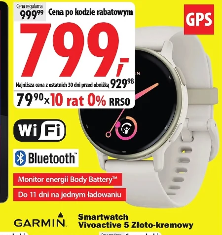 Smartwatch Vivoactive 5 Złoto-kremowy Monitor energii Body Battery™ Do 11 dni na jednym ładowaniu