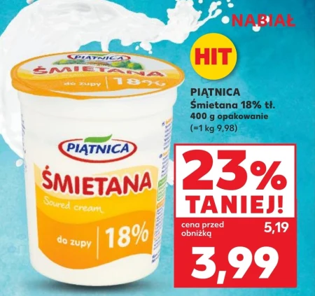 PIĄTNICA Śmietana 18% tł. 400 g opakowanie (=1 kg 9,98)