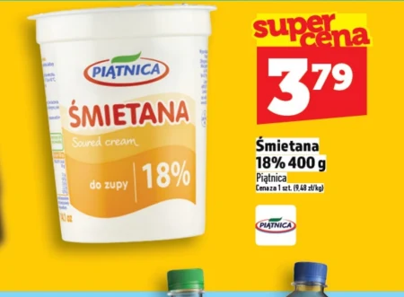 Śmietana 18% 400 g Piątnica Cena za 1 szt. (9,48 zł/kg) Wykorzystaj tę wyjątkową śmietanę 18% Piątnica do przygotowania pysznych sosów, kremów oraz deserów, dodając im aksamitnej konsystencji i delikatnego smaku. Doskonale sprawdzi się w kuchni, wzbogacając smak zup, dań mięsnych i warzywnych, a także jako baza do kremowych wypieków i słodkich musów – idealna do domu i profesjonalnej gastronomii. Ta uniwersalna śmietana to niezbędny składnik w kuchni każdego miłośnika gotowania, gwarantujący wyjątkowe doznania kulinarne.
