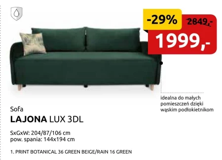 Sofa LAJONA LUX 3DL. SxGxW: 204/87/106 cm, pow. spania 144x194 cm.