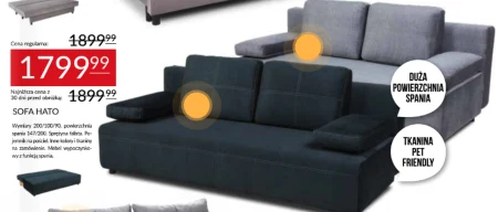 SOFA HATO Wymiary 200/100/90, powierzchnia spania 147/200. Sprężyna falista. Pe- jernnik na pościel, Inne koloryi tkaniny na zamówienie. Mebel wypoczynke- wy z funkcją spania.
