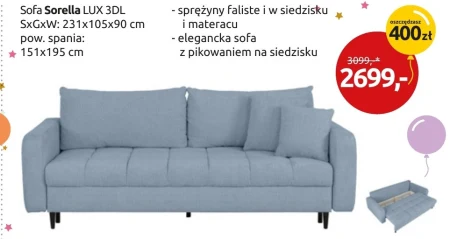 Sofa Sorella LUX 3DL SxGxW: 231x105x90 cm pow. spania: 151x195 cm - sprężyny faliste i w siedzisku i materacu - elegancka sofa z pikowaniem na siedzisku