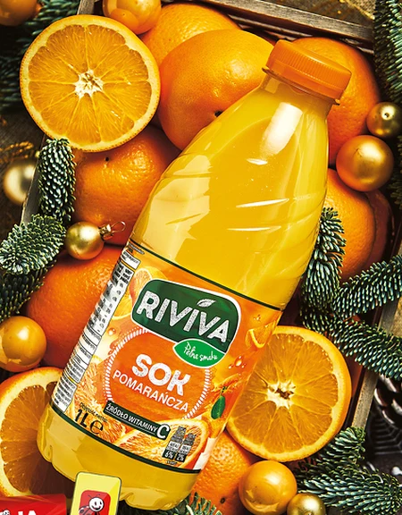 Sok pomarańczowy Riviva, 11 cena regularna 4,29 zł/but. limit dzienny 6 but. (maks. 3 gratis) na kartę Moja Biedronka
