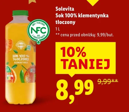Solevita Sok 100% klementynka tłoczony 1 L ** cena przed obniżką: 9,99/but.