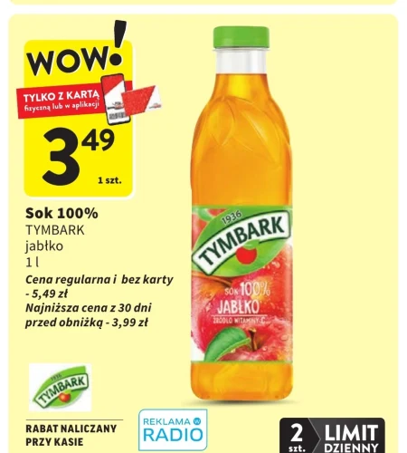 Sok 100% TYMBARK jabłko 1 l