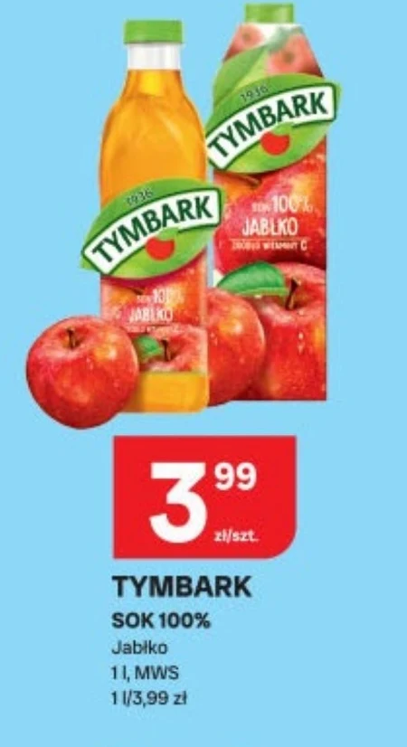 Tymbark sok 100% jabłkowy dostępny jest teraz w Chorten w cenie 3,99 zł za butelkę litrową. To naturalny sok wyprodukowany w pełni z jabłek, idealny do codziennego picia, jako dodatek do śniadania lub orzeźwiający napój w ciągu dnia. Produkt jest pasteryzowany i posiada pojemność jednego litra. W Chorten możesz zaoszczędzić, wybierając ten sprawdzony i lubiany sok. Nie przegap tej okazji, by zgromadzić zapas ulubionego smaku w korzystnej cenie.