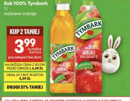 Sok 100% Tymbark, o pojemności 1 litra, dostępny jest w ofercie Delikatesy Centrum w cenie 3,99 zł za butelkę przy zakupie dwóch sztuk. Drugi sok w promocji jest tańszy o 51%. To doskonały wybór dla osób szukających naturalnego i orzeźwiającego napoju, idealnego do śniadania, lunchu lub jako dodatek do aktywności fizycznej. Aktualnie obowiązuje najniższa cena z ostatnich 30 dni, wcześniej produkt kosztował 4,49 zł, a cena za pojedynczą butelkę wynosi 5,39 zł. Warto skorzystać z tej okazji i zaopatrzyć się w ulubiony sok w atrakcyjnej cenie. Ważność: 2026-04-02 – 2026-04-08 Źródło: gazetka Delikatesy Centrum
