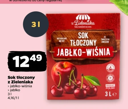 Sok tłoczony z Zieleniaka > jabłko-wiśnia > jabłko 3 l 4,16/1 l