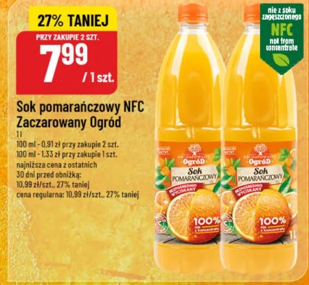 Sok pomarańczowy NFC Zaczarowany Ogród 11 100 ml - 0,91 zł przy zakupie 2 szt. 100 ml - 1,33 zł przy zakupie 1 szt. najniższa cena z ostatnich 30 dni przed obniżką: 10,99 zł/szt., 27% taniej cena regularna: 10,99 zł/szt., 27% taniej