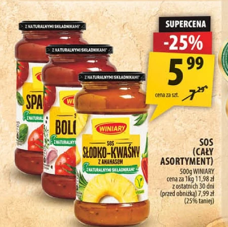 SOS (CAŁY ASORTYMENT) 500g WINIARY cena za 1kg 11,98 zł z ostatnich 30 dni (przed obniżką) 7,99 zł (25% taniej)